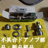 【ドアノブ交換のアドバイス】ドアノブのない折戸タイプが主流になっておりますが、中には写真のような浴室もみられます。今回の事例は湿気・水分がこもりやすくドアノブ内部が錆び付いて開け閉めができなくなった時、ご自身で浴室のドアノブ交換をチャレンジする場合の参考アドバイスです。ドアノブを交換する場合、まずはドアノブの分解からはじめます。何故ならドア内部に収まっているハンドル固定軸受ケース形状が重要です。メーカー名/型番の表記の有無を確認し、必ずメモを取るか、写真撮影してご購入して下さい。製番表記がない場合、取付け位置寸法、パーツ/ドアの厚みの寸法を測りをパーツをホームセンターへお持ちになり同製品あるいは互換性のある製品をご購入するようにしてください。
